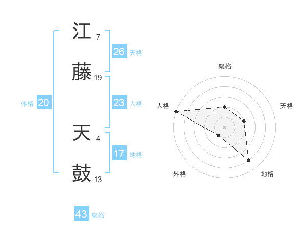 江藤 天鼓さんを姓名の画数から五運を鑑定