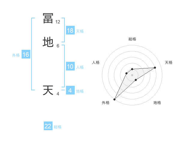 冨地 天さんの総格は22画の1点!