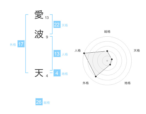 愛波 天さんの総格は26画の2点!