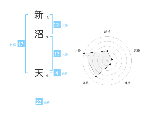 新沼 天さんの総格は26画の2点!