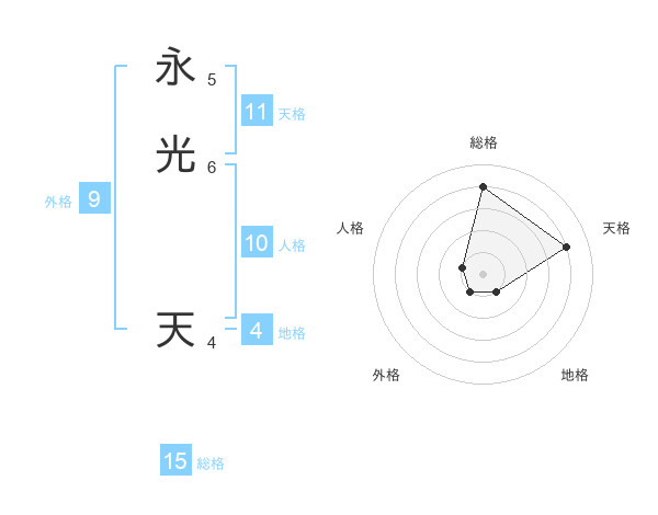 永光 天さんの総格は15画の4点!