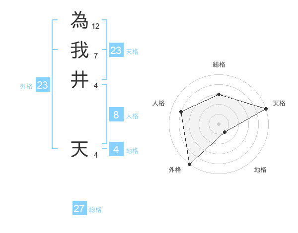 為我井 天さんの天格は23画の5点!