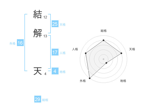 結解 天さんの総格は29画の4点!