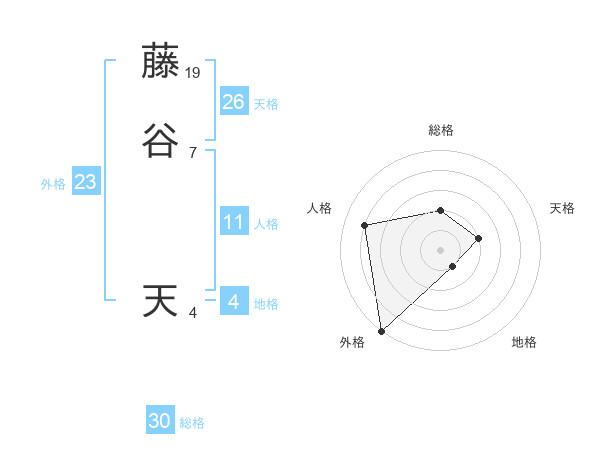 藤谷 天さんの総格は30画の2点!