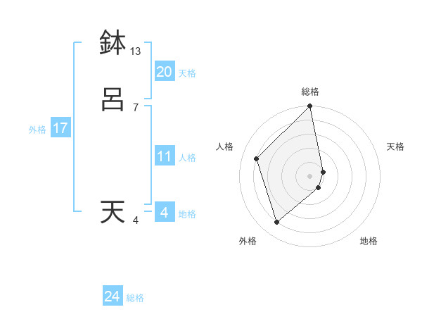 鉢呂 天さんの外格は17画の4点!