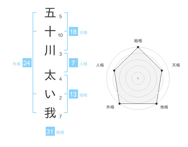五十川 太い我さんを姓名の画数から五運を鑑定