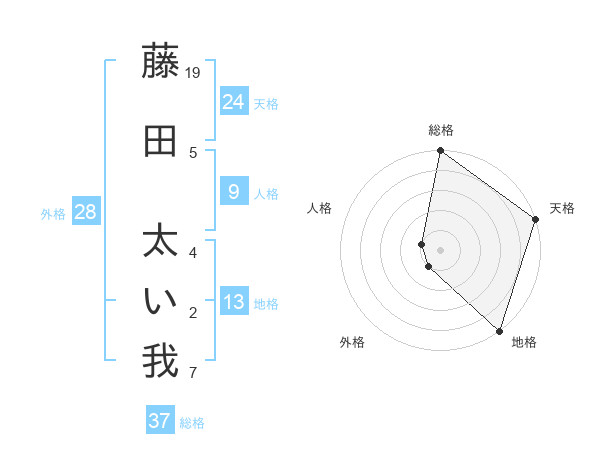 藤田 太い我さんを姓名の画数から五運を鑑定
