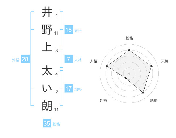 井野上 太い朗さんを姓名の画数から五運を鑑定