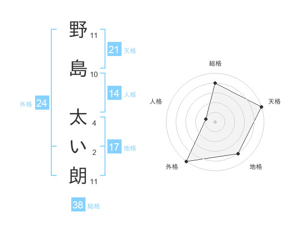 野島 太い朗さんを姓名の画数から五運を鑑定