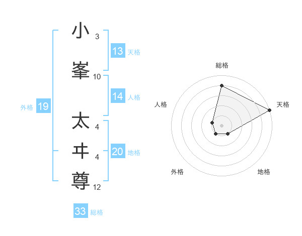 小峯 太ヰ尊さんの天格は13画の5点!