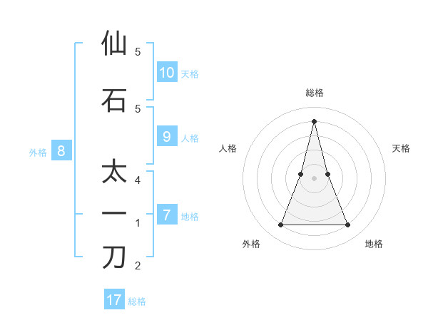 仙石 太一刀さんを姓名の画数から五運を鑑定