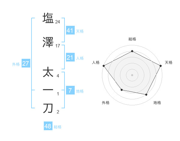 塩澤 太一刀さんを姓名の画数から五運を鑑定