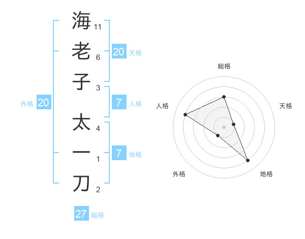 海老子 太一刀さんの総格は27画の3点!