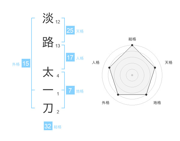 淡路 太一刀さんを姓名の画数から五運を鑑定
