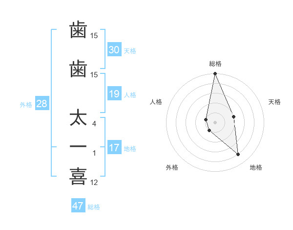 歯歯 太一喜さんを姓名の画数から五運を鑑定