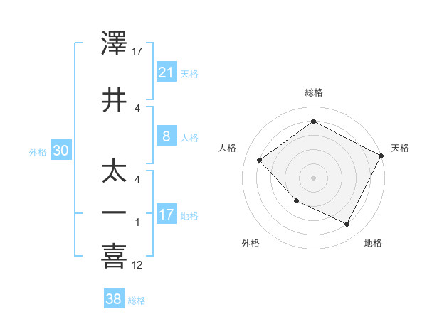 澤井 太一喜さんを姓名の画数から五運を鑑定