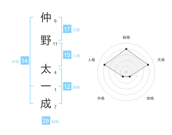 仲野 太一成さんを姓名の画数から五運を鑑定