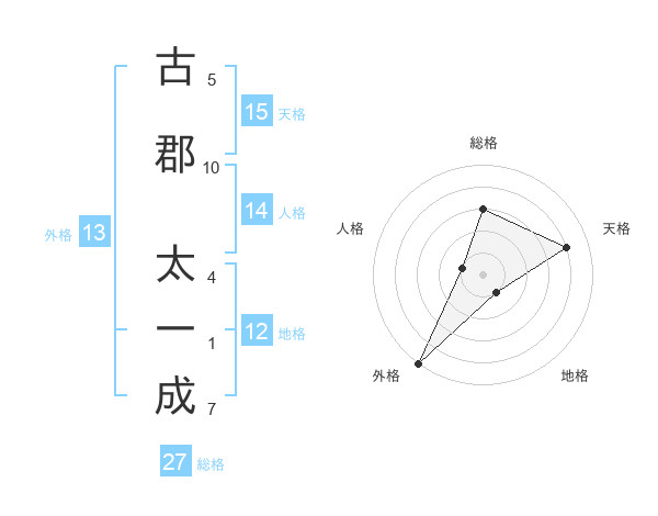 古郡 太一成さんの外格は13画の5点!