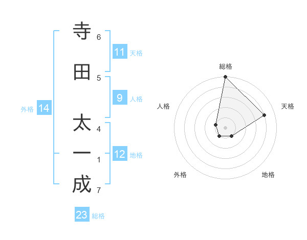 寺田 太一成さんを姓名の画数から五運を鑑定