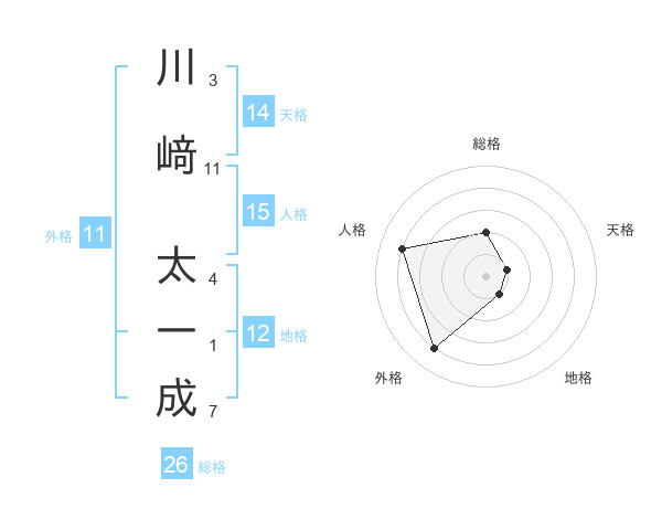 川﨑 太一成さんを姓名の画数から五運を鑑定