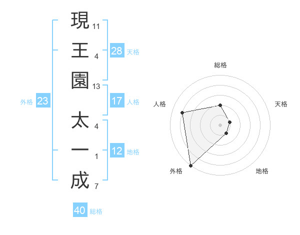 現王園 太一成さんの外格は23画の5点