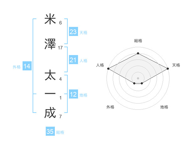 米澤 太一成さんを姓名の画数から五運を鑑定