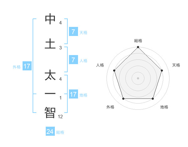中土 太一智さんの総格は24画の5点!