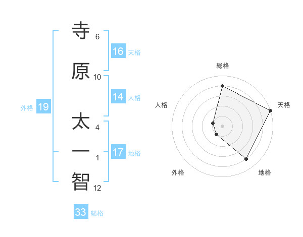 寺原 太一智さんの総格は33画の4点!