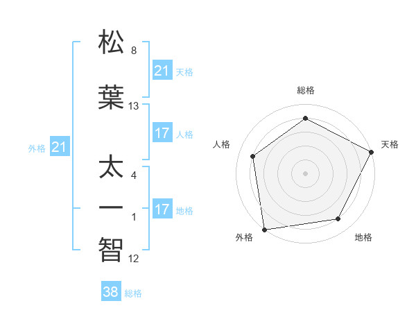 松葉 太一智さんを姓名の画数から五運を鑑定
