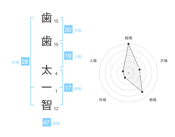 歯歯 太一智さんを姓名の画数から五運を鑑定