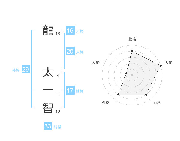 龍 太一智さんの天格は16画の5点!