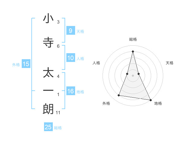 小寺 太一朗さんの総格は25画の4点!