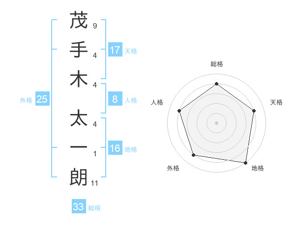 茂手木 太一朗さんを姓名の画数から五運を鑑定