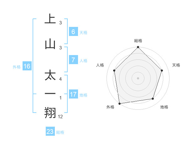 上山 太一翔さんの総格は23画の5点!