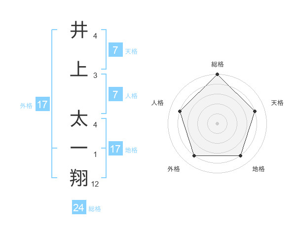 井上 太一翔さんを姓名の画数から五運を鑑定