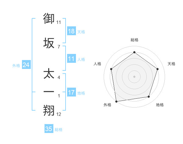 御坂 太一翔さんを姓名の画数から五運を鑑定