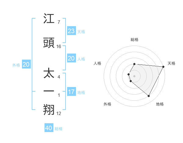 江頭 太一翔さんの天格は23画の5点!