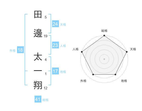 田邊 太一翔さんの天格は24画の5点!