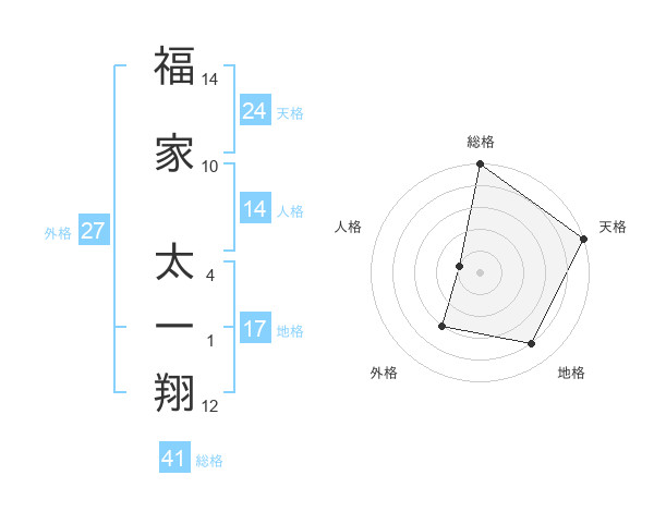 福家 太一翔さんを姓名の画数から五運を鑑定