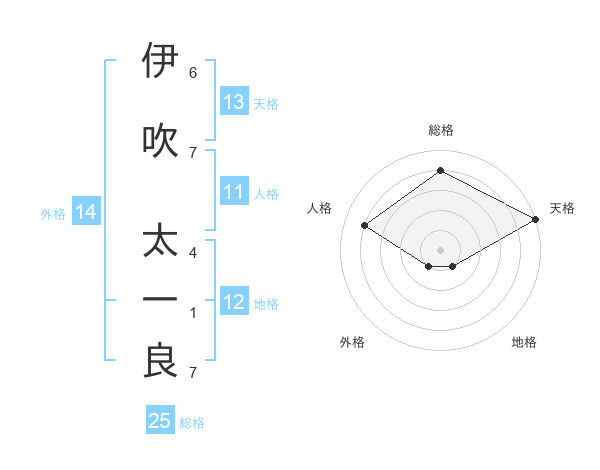 伊吹 太一良さんを姓名の画数から五運を鑑定