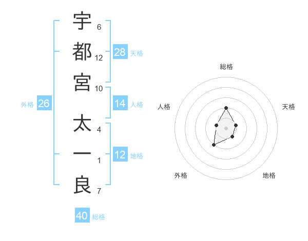 宇都宮 太一良さんを姓名の画数から五運を鑑定