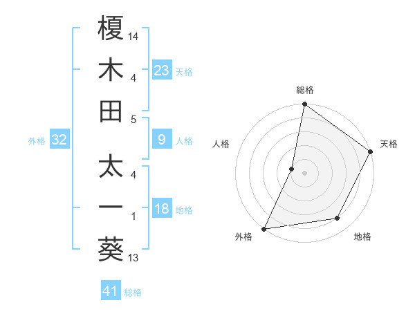 榎木田 太一葵さんの総格は41画の5点!
