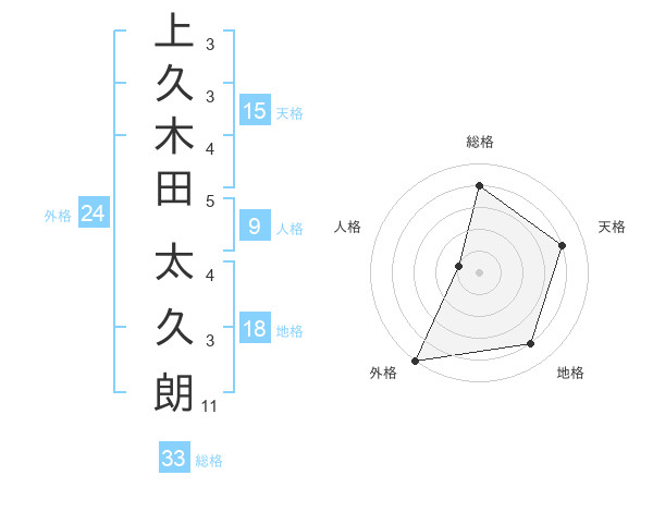 上久木田 太久朗さんの総格は33画の4点!