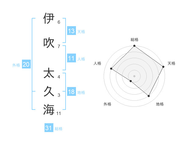 伊吹 太久海さんを姓名の画数から五運を鑑定