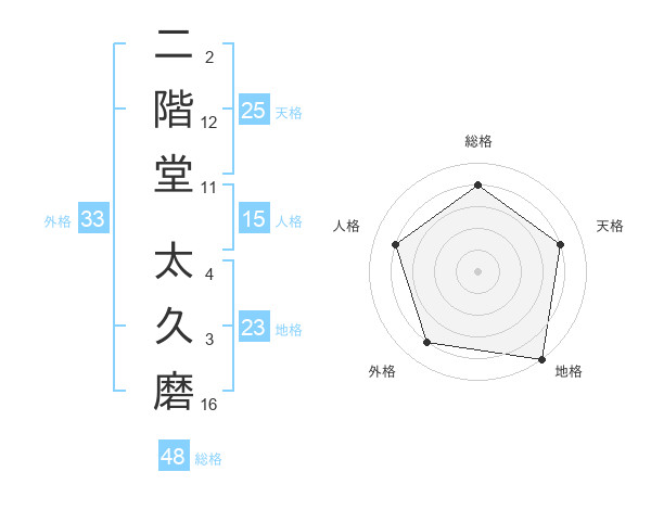 二階堂 太久磨さんを姓名の画数から五運を鑑定