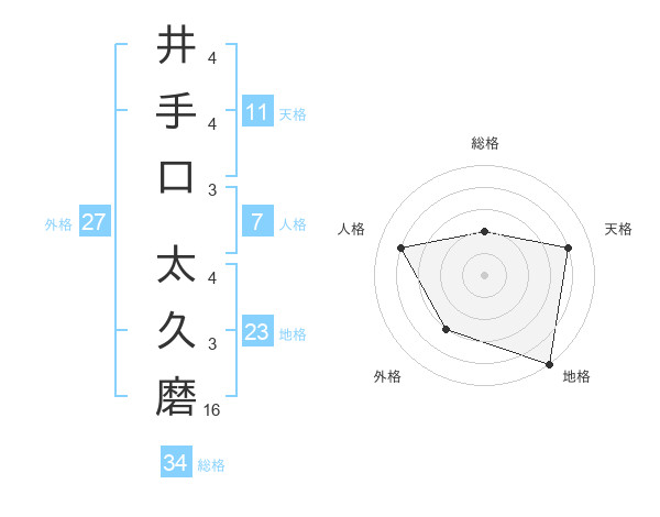 井手口 太久磨さんを姓名の画数から五運を鑑定