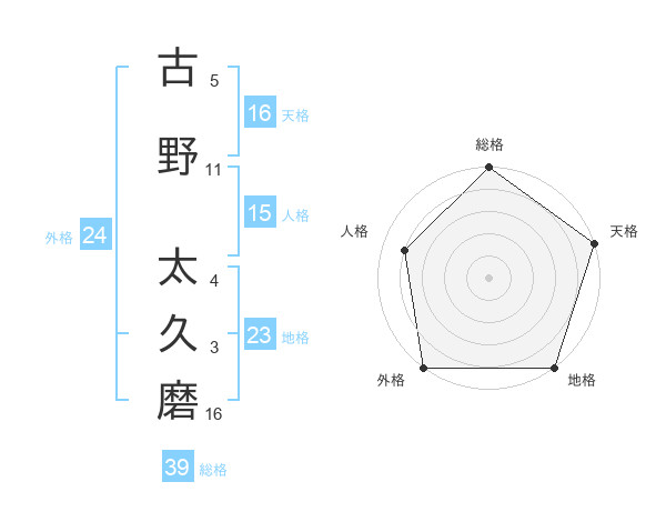 古野 太久磨さんを姓名の画数から五運を鑑定