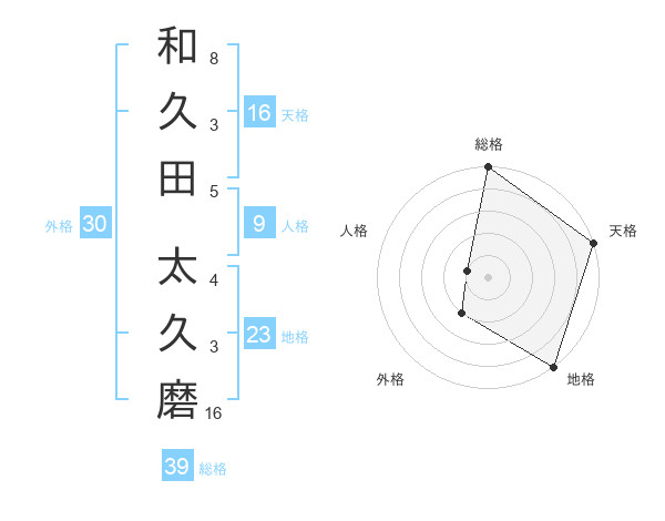 和久田 太久磨さんを姓名の画数から五運を鑑定
