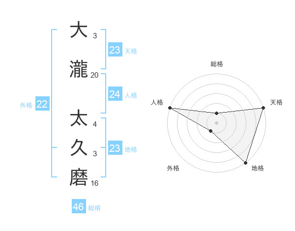 大瀧 太久磨さんの天格は23画の5点!
