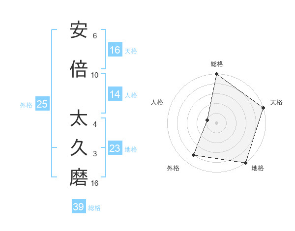 安倍 太久磨さんを姓名の画数から五運を鑑定